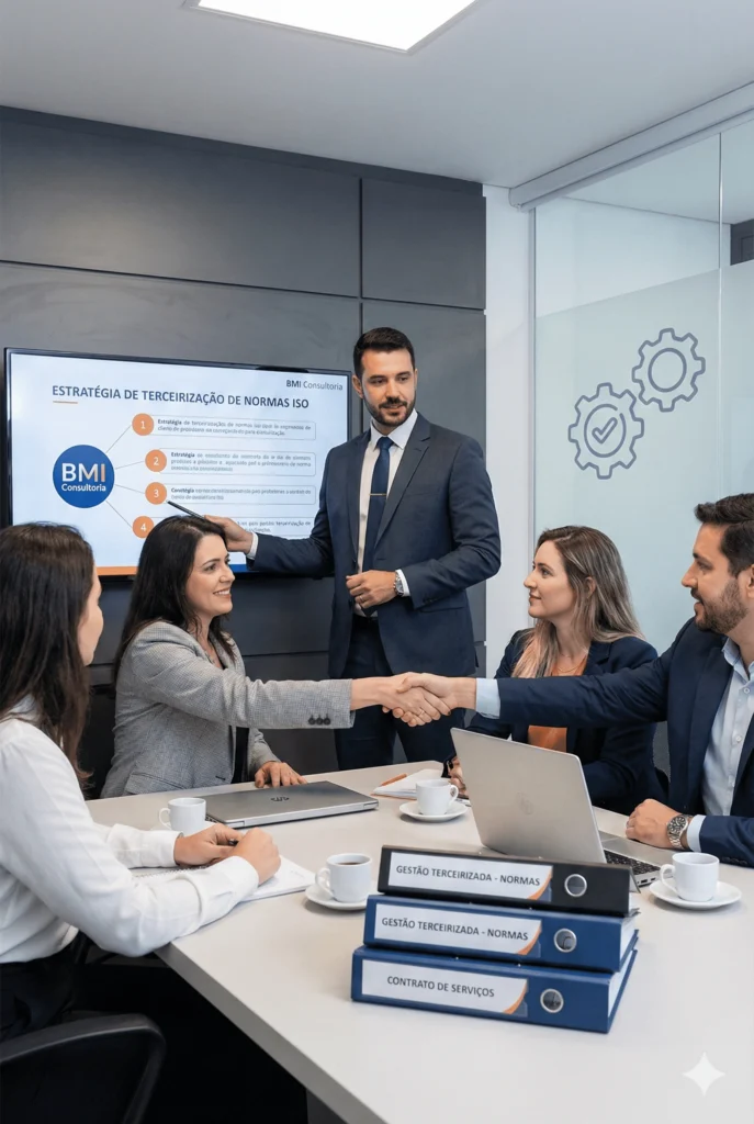 A terceirização da norma é um serviço especializado no qual a BMI Consultoria assume a gestão completa do sistema de gestão da sua empresa — seja ISO 9001, 45001, 27001 ou qualquer outra norma — garantindo que todos os requisitos sejam mantidos corretamente no dia a dia da organização.